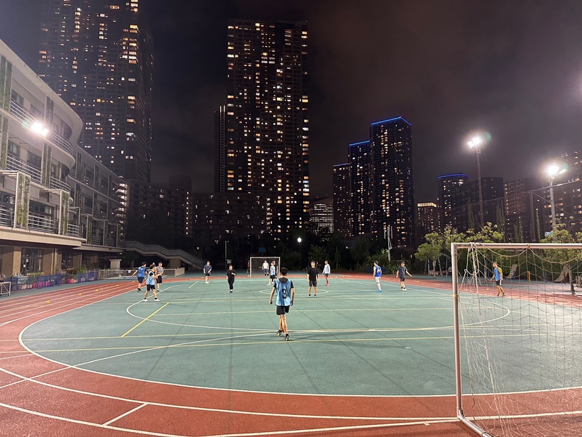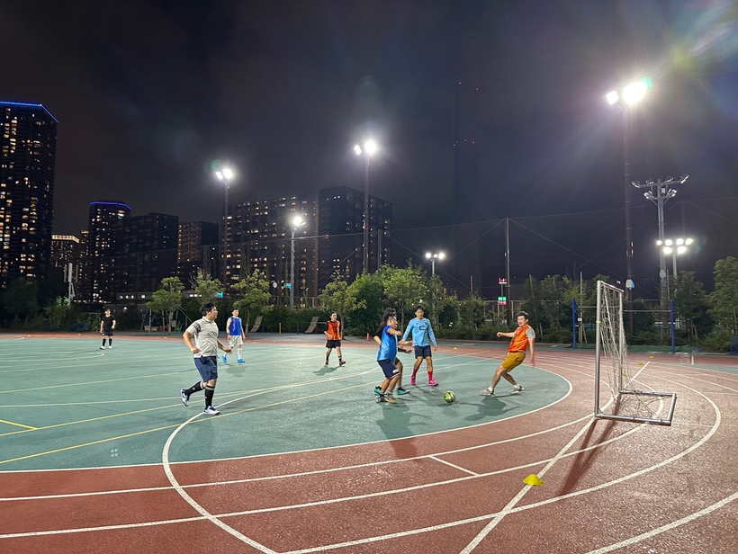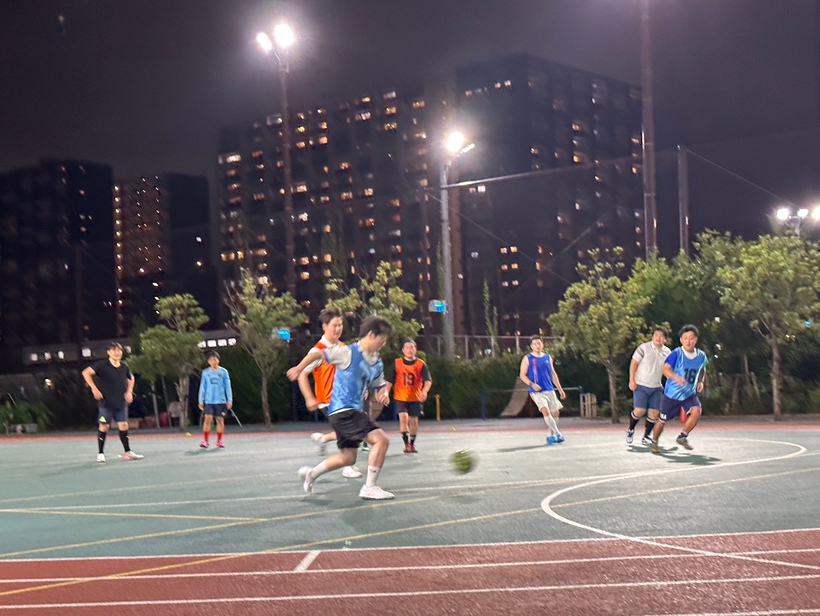 경기장에서 시합중인 풋살 동호회