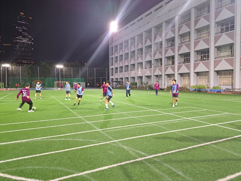 경기장에서 시합중인 풋살 동호회