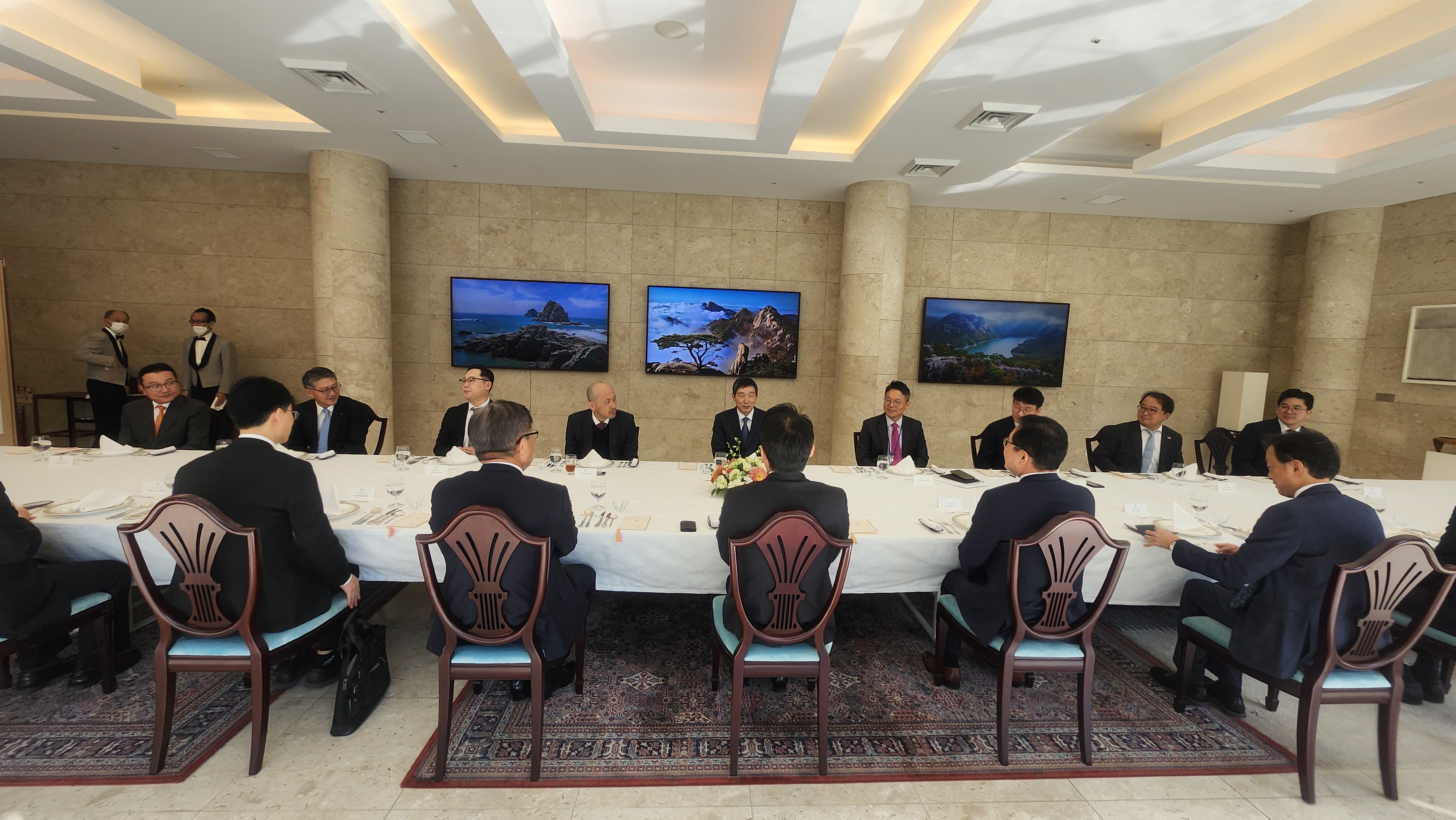 - 주일한국기업연합회 : LG전자재팬 손성주 대표 등 11명 - 경제산업성 : 타무라 히데야스 통상교섭관, 하라 미츠루 한국실장 등 2명 - 주일대한민국대사관 : 정경록상무관, 김상연상무관보, 김미정전문관 등 3명 |