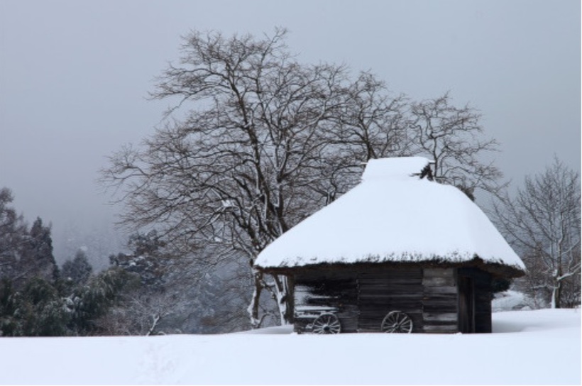 한적한 시골에 하얀 눈으로 덮인 초가가 있는 겨울의 풍경을 떠올리면 되겠다.