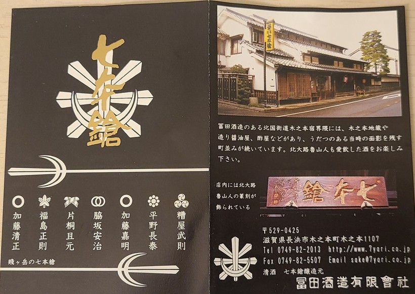 시가현(滋賀県)의 나가하마시(長浜市)에 있는 토미타 주조(冨田酒造)에서 양조하는 시치혼야리(七本鎗)가 그 주인공이다.