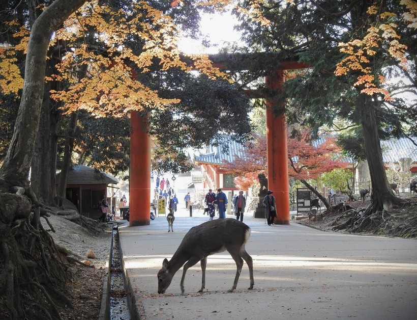 일본에서 엄밀히 말해 사슴이라고 하면 바로 나라(奈良)를 떠 올린다. 토다이지(東大寺)의 사슴으로 유명한 나라공원(奈良公園)이 있기 때문이다. 사슴이 도망치는 게 아니라, 사람이 도망가야 할 정도로 사슴이 많고, 평화로운 동네가 바로 이곳 나라(奈良)다.
