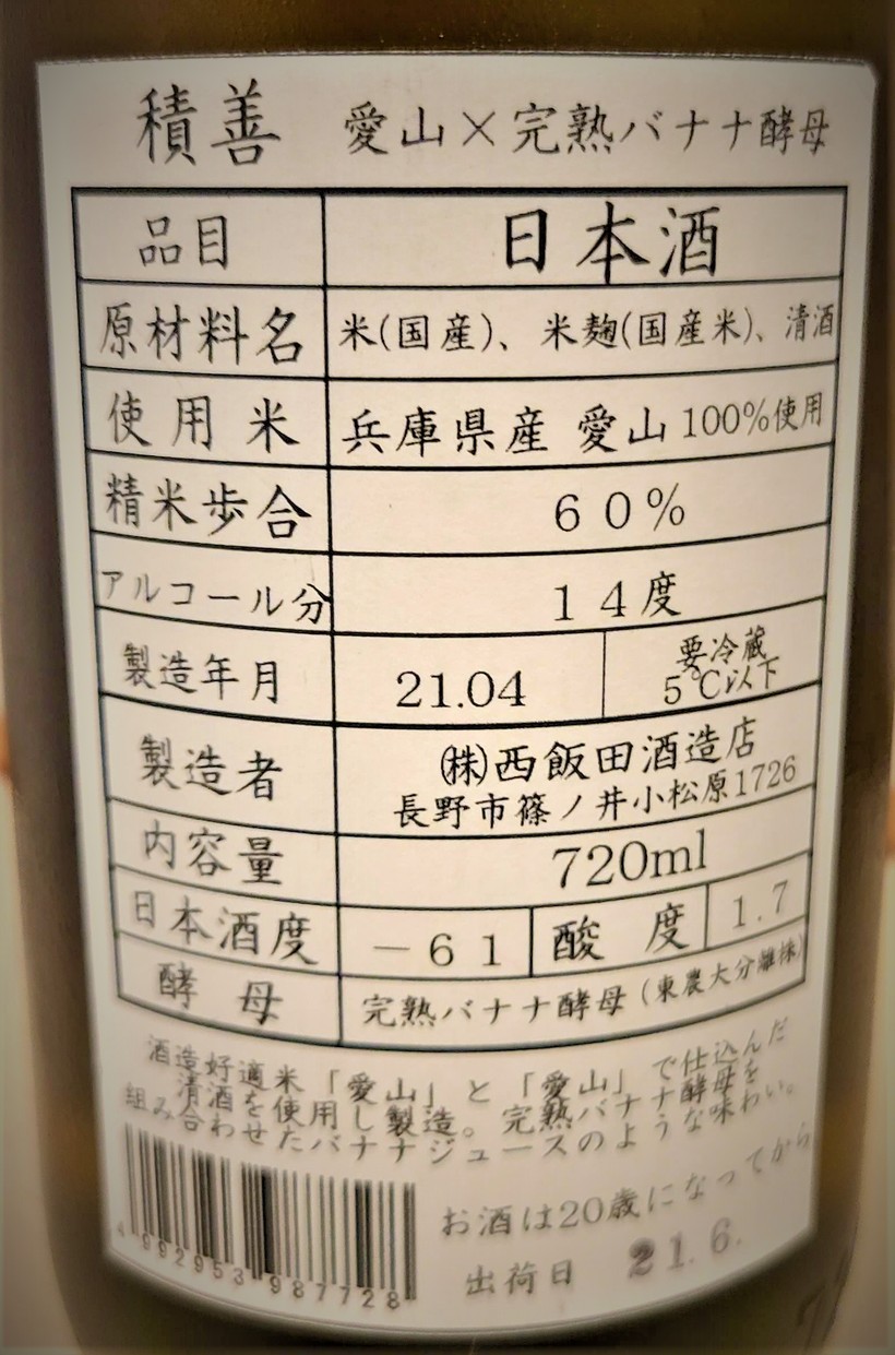 積善 ひとそべり 極バナナ 生原酒